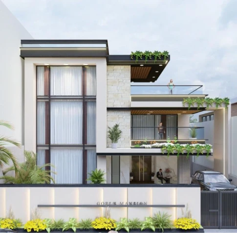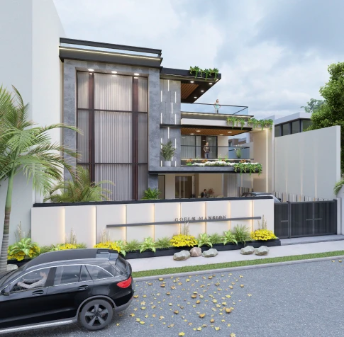 Goel’s Residence is a contemporary private home designed around openness, light, and modern living. Spanning 10,000 sq. ft., the residence reflects a clean architectural language with generous volumes. The design prioritizes spatial continuity and comfort across private and shared areas. A strong connection between indoors and outdoors defines the overall character of the home.