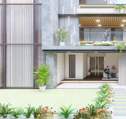 Goel’s Residence is a 10,000 sq. ft. private residential project designed by AR Studio. The scope included complete architectural and interior design. The project maximizes natural light, ventilation, and spatial openness.