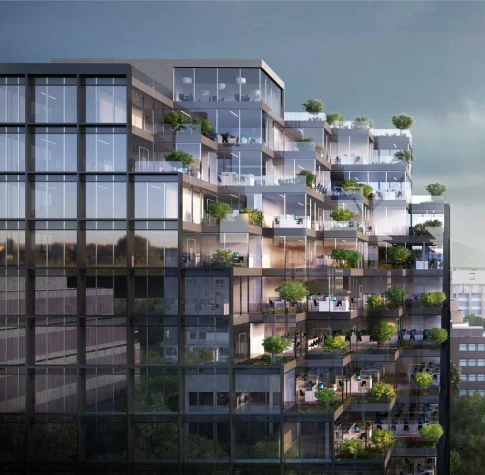 The design is driven by the concept of subtracting mass to create dynamic voids within the built form. These carved-out spaces invite natural light, ventilation, and visual connectivity across levels. Terraces and open-air zones are seamlessly integrated to blur the boundary between indoors and outdoors. The approach enhances both functionality and experiential quality for office users.