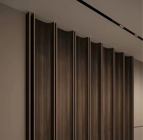 Fluted panels, lime plaster, and tactile finishes create depth while maintaining restraint.
